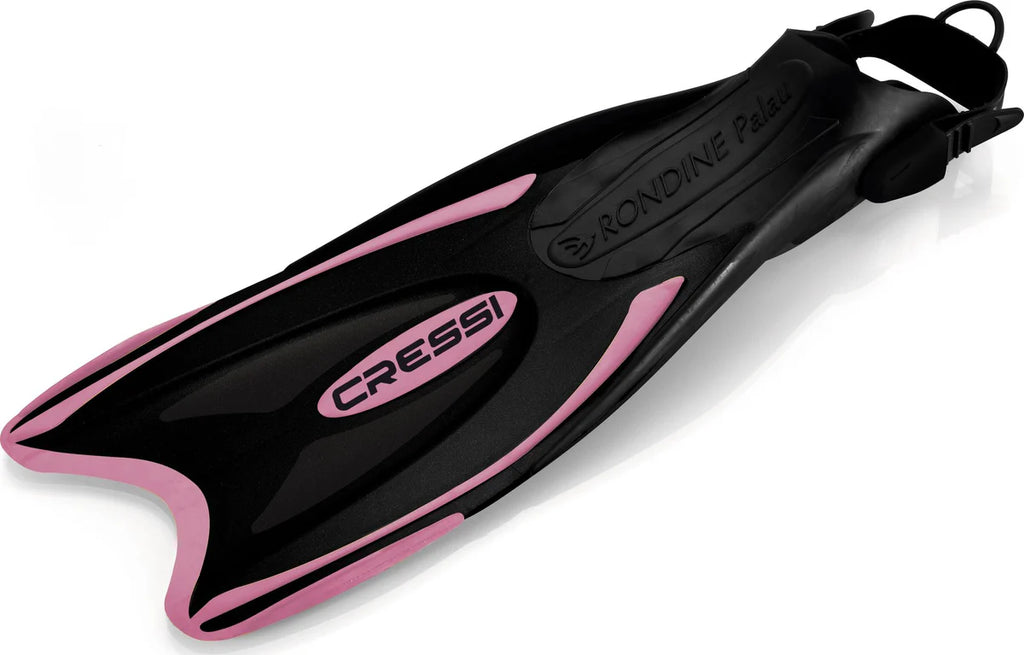 The second purpose was to guarantee extreme comfort and an ease of fit in a strapped open heel fin even if it is to be worn barefoot. The result is a fin that is extraordinarily practical, that adapts to practically any foot size, and that allows for very quick fitting in any situation.