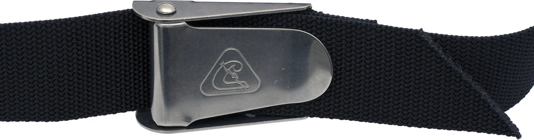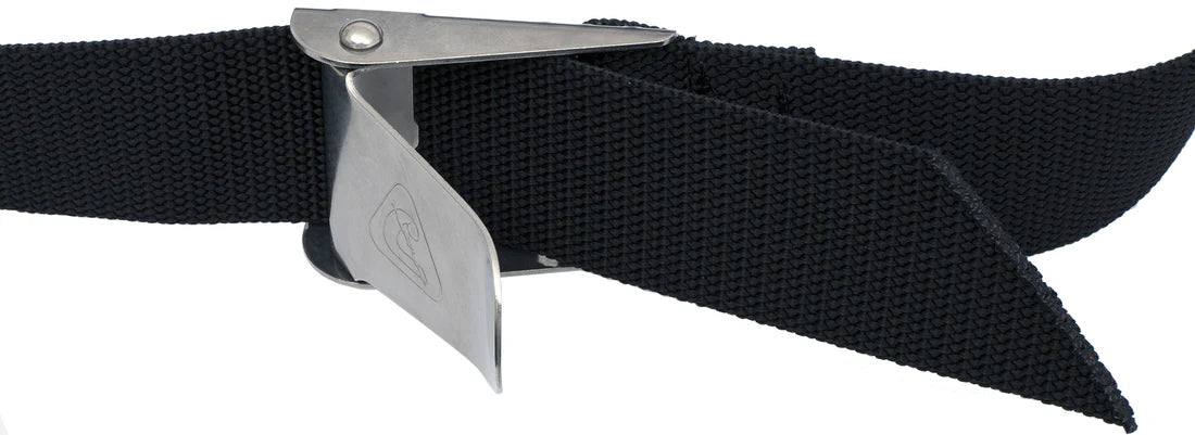 Strong woven nylon weight belt with stainless steel buckle. The quick-release stainless steel buckle provides instinctive and rapid emergency release. The buckle pin that passes through is very strong and is riveted at both ends