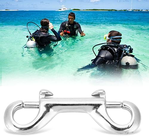 Stainless steel , double ended snap hook or clip used in scuba diving to attach gear to BCD or other equipment. These clips are corrosion-resistant, have a spring-loaded gate on both ends, and are frequently used for attaching accessories like dive lights or cameras