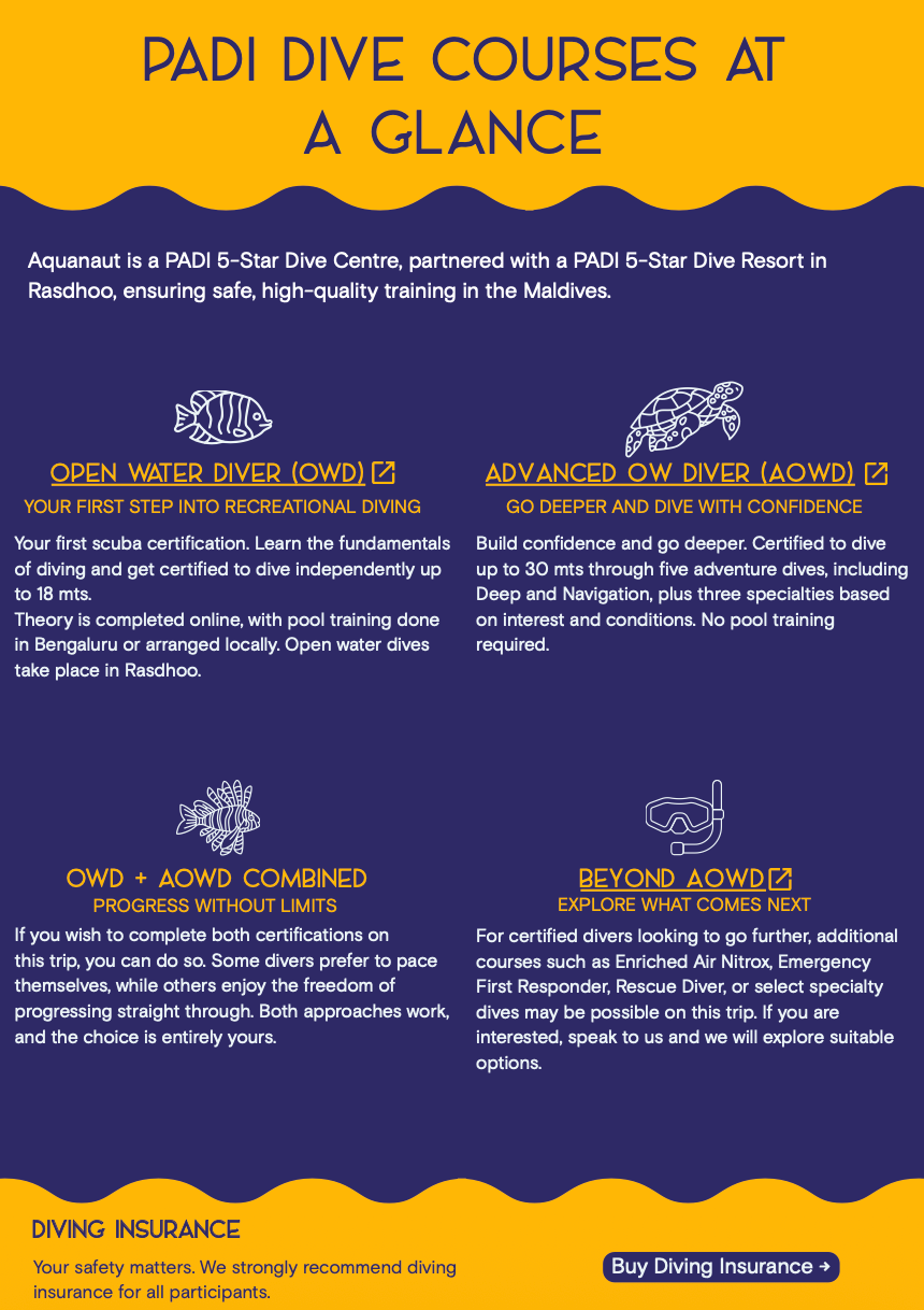 For experienced divers, Rasdhoo is legendary for early-morning hammerhead encounters, drifting currents, and iconic sites like Madivaru Corner. Here, mantas, reef sharks, and swirling schools of fish move effortlessly through the water. For first-time divers, the island offers something just as special: calm conditions, vibrant reefs, and a front-row seat to the moments that make people fall in love with diving.