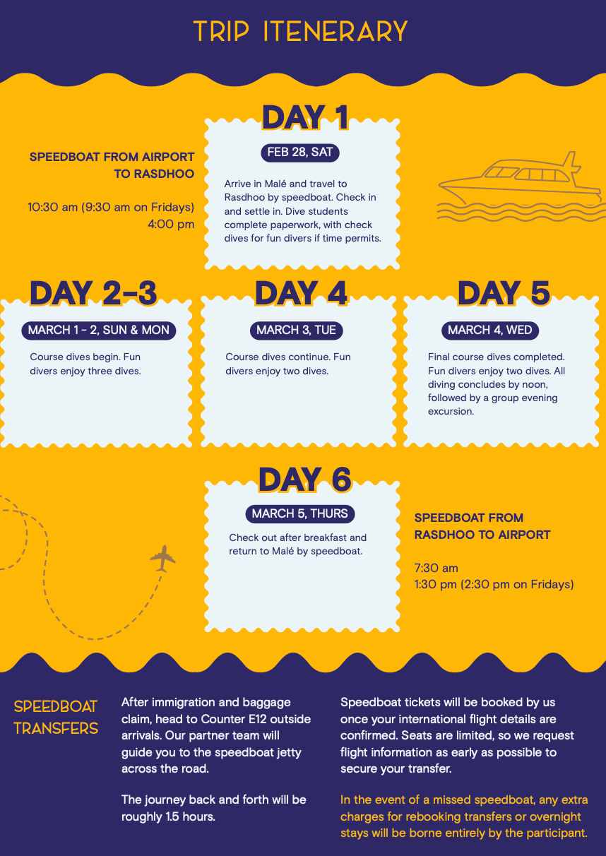 Transfers: Public speedboat transfers between Male and Rasdhoo, plus all local island transfers.
