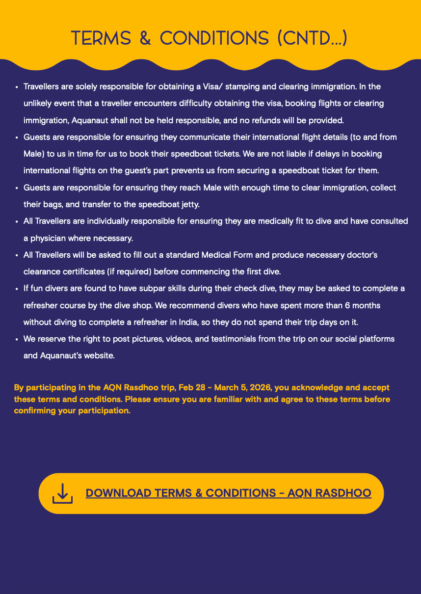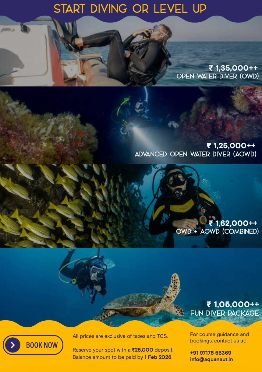 Extras: Extra dives, underwater camera rentals, or dive torch rentals.
