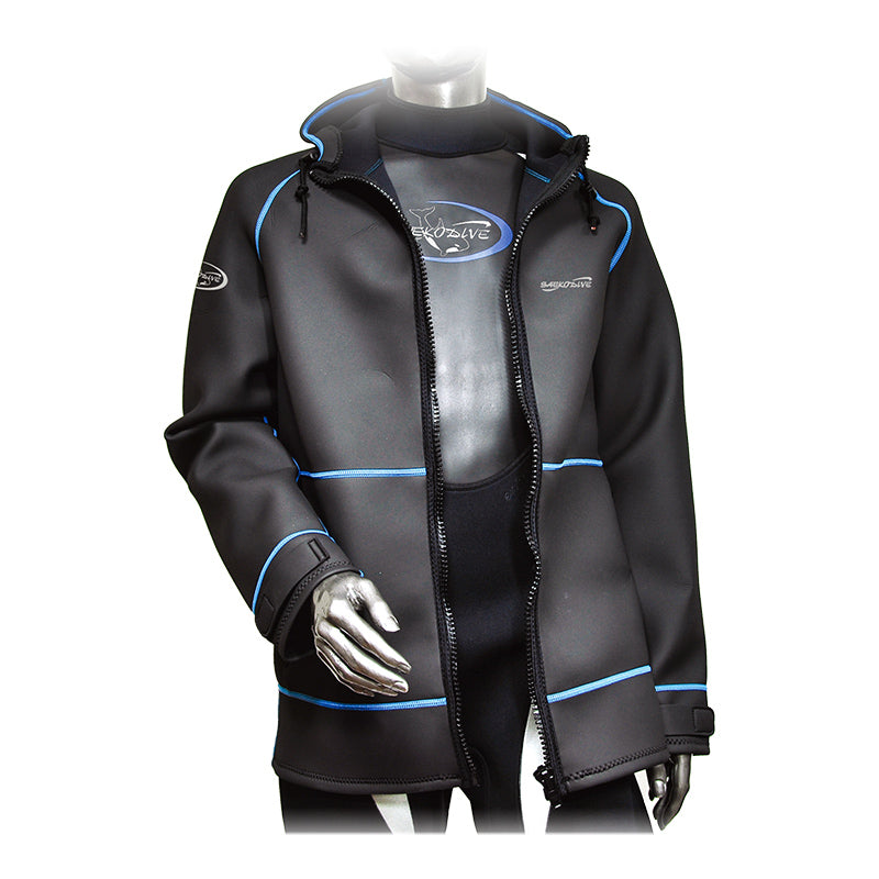 • 2 mm Neoprene Nylon Hooded Wetsuit Jacket keeps you warm between and after dives