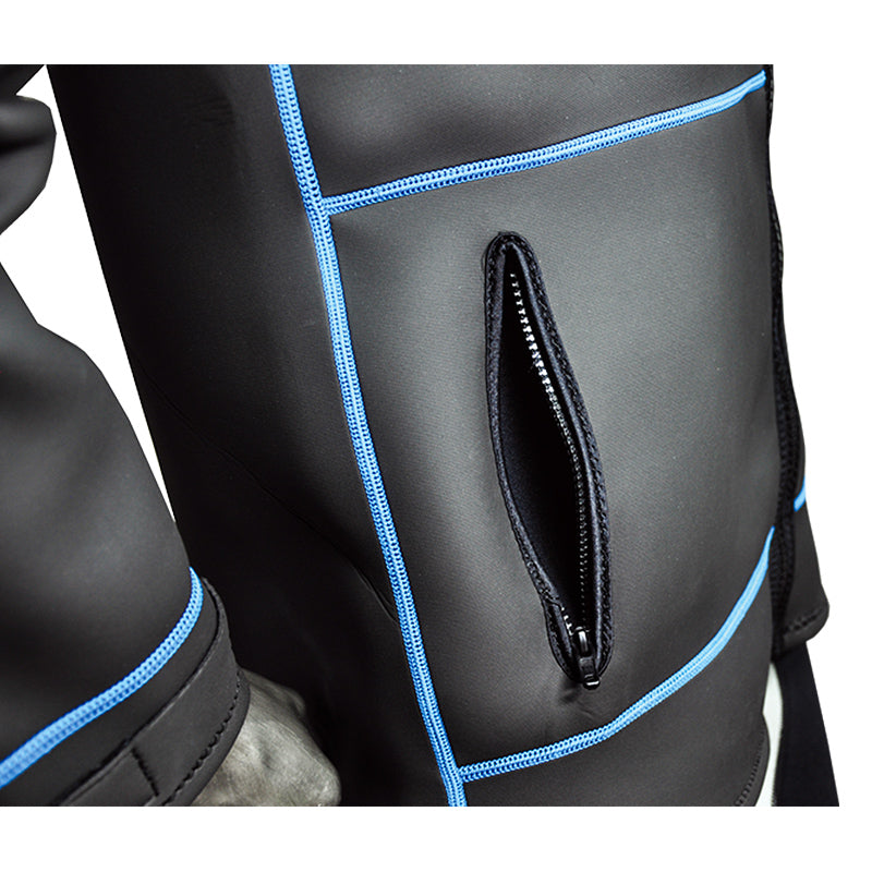 It can be worn after boat diving or on a beach after a cold day surfing, paddling, or wakeboarding. It is long enough to keep your core body warm and dry. Its two deep zippered pockets and adjustable Velcro cuffs can keep your hands warm as well. Hooded design prevents heat loss on head and neck. Convenient large front zipper for ease of putting on and taking off.